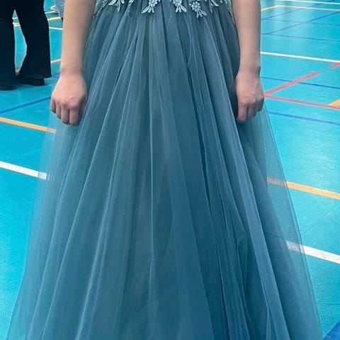 Lukion vuoden 2023 vanhojentansseihin uutena hankittu mekko, ostopaikka Minna Lisa, Helsinki. Käytetty ainoastaan yhden kerran. Pukuun merkitty koko on 6 ja kuvissa puvun käyttäjän pituus on 176 cm. Puvussa on huomaamattomat taskut molemmilla sivuilla. Puku on pesty käytön jälkeen ja sen jälkeen säilytetty sisätiloissa suojapussissa. Suojapussi tulee puvun mukana. Osto- ja pesulakuitti löytyy.
