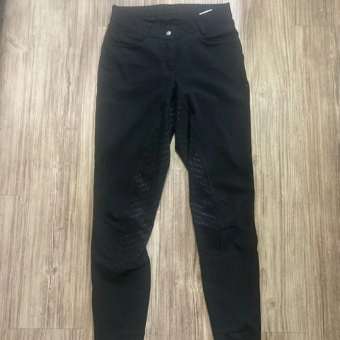 Hyvässä kunnossa olevat mustat Horze-merkkiset ratsastushousut. Koko 36 mutta menee myös 38. Takana vetoketjullinen tasku esim puhelimelle. Gripit vähän kuluneet mutta käyttökelpoiset housut vielä.