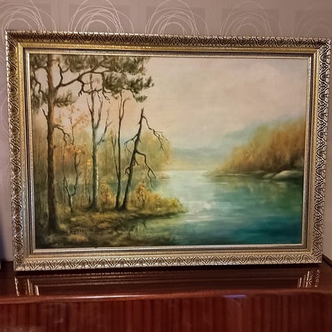 A. Karjalainen asetelma öljyvärimaalaus kehystetty
