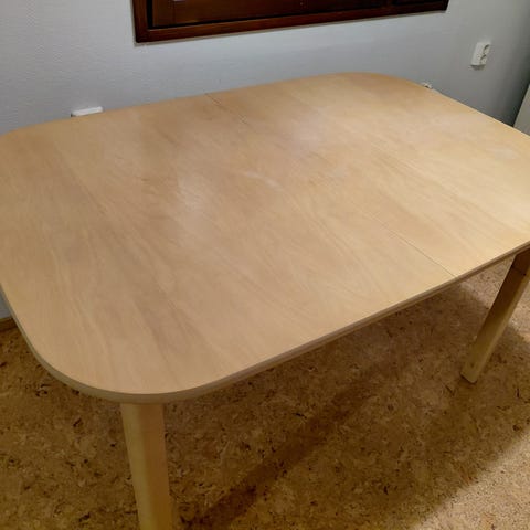 Pöytä on levitettävä, joten se muuntuu tarvittaessa isommallekin porukalle.