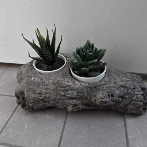 Puinen kukkateline, jossa on korkea, kolmijalkainen rakenne ja kaksi tasoa ruukkukasveille. Teline on tummanruskeaa puuta, ja se soveltuu sisäkäyttöön esimerkiksi olohuoneeseen tai ikkunan eteen. Ylempi taso on keskellä ja alempi taso ulottuu sivuille, mikä mahdollistaa useamman kasvin sijoittamisen eri korkeuksille.