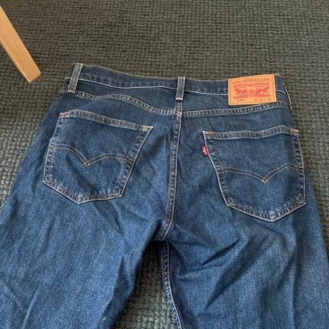 Vaaleat Levi's-merkkiset farkut. Koko W30/L30. Haarasaumoissa pientä kulumaa.