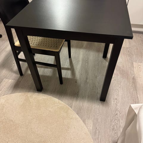 Niissä on jonkin verran perus kulumisen ja käytön jälkiä, mutta ei häiritsevästi. Pöytä on ollut meillä tietokonepöytänä käytössä, mutta sopii erittäin hyvin esim. ruokapöydäksi.
