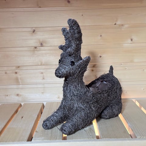 Risuista valmistettu kukka-astia. Ruukun sisäosa on vuorattu muovilla.