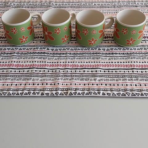 Kermansaven TV-/aamiaisetti. Kolme mukia nimellistä (isä, Risto Eero), yksi nimetön. 4 settiä - 6€/kpl. Kunto hyvä.