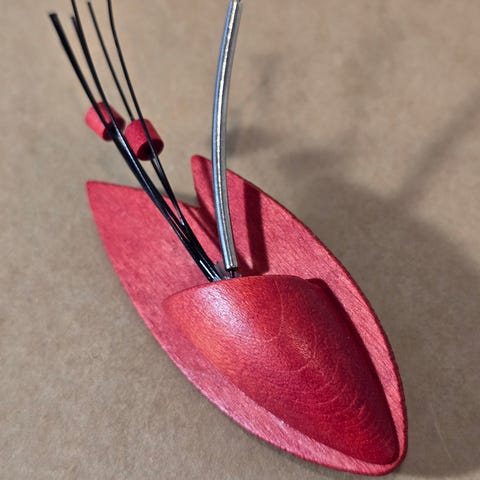 Hyväkuntoinen Aarikan Piccolo/tonttu puinen monivärinen rintaneula.