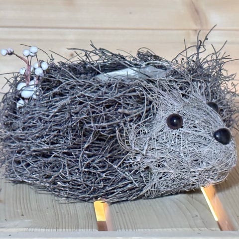 Risuista tehty poroistutusruukku. Poron selässä on syvennys vaikkapa kukkaruukulle.