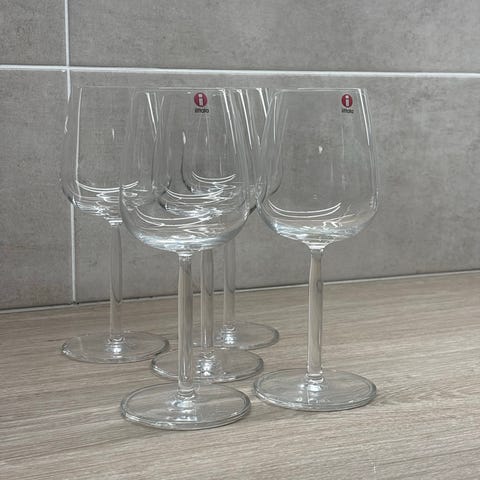 Hyväkuntoiset Iittalan Essence -sarjan valkoviinilasit ylimääräisenä.