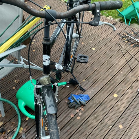 Siitä jollekin satulaa vaille valmis fillari. Löytyy etu ja taka lamppuvalot ja lukko mukaan kaupan päälle.