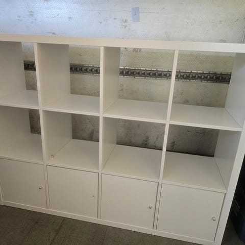IKEA hyllykkö, jossa muutama vaaleanpunainen laatikko. Hyvässä kunnossa, ollut kuvan mukaisessa asennossa ja alapinnalla huopatassut. Saa toki irti halutessaan, mutta menee näin suoraan vaikka tv-tasona.
