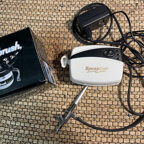 Parkside PABK 60A1 airbrush-setti kompressorilla. Settiin kuuluu sähkötoiminen kompressori, airbrush-ruisku, paineletku, useita väripurkkeja sekä erilaisia suuttimia ja liittimiä. Sopii pienten pintojen maalaamiseen ja viimeistelyyn, kuten harrastemaalaukseen, pienoismalleihin ja muuhun tarkkaan maalaustyöhön. Kompressori on varustettu kantokahvalla ja kumijaloilla, jotka vakauttavat laitteen käytön aikana.