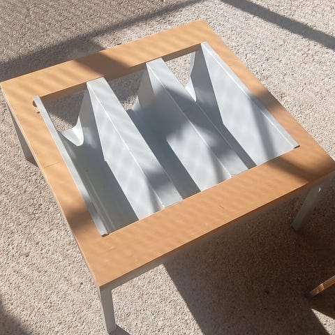 Otto-pöytä/lehtiteline MDF-levyä, hylly takorautaa. 36*32*46 cm.