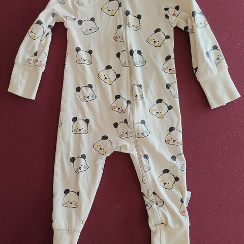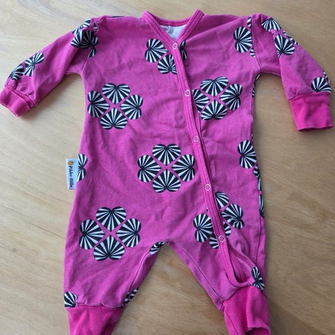 Yöpuku. Käyttöönottopesty valkopyykissä nurinpäin ja hajustamattomalla baby-pesuaineella, ei ehtinyt käyttöön. Tukevaa kangasta.