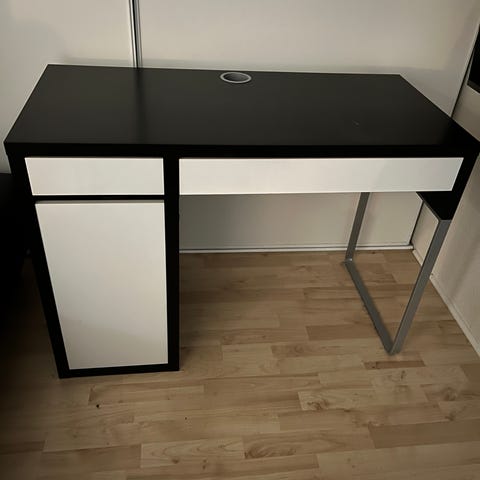 VARATTU. Annetaan tukeva työpöytä pois uuden tieltä. Pöytä täysin kunnossa, pieniä käytön jälkiä pinnassa ja yksi laatikko vaatii kiristystä (näkyy kuvassa). Mitat: