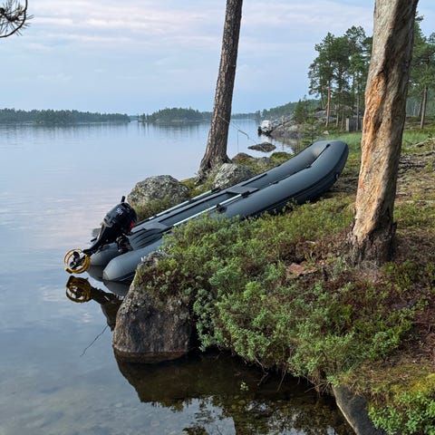 Kesä tulee ja joet aukeaa. tästä kuvan mukainen jokivene paketti lohen soutuun tai muuhun. Veneessä mukana 6hp moottori irtotankilla, 2x airot, 2x jakkara, laitamallin vapatelineet, kaiku ja tukeva suojapeite.