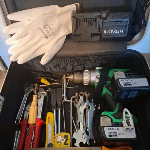 Vajaa pari vuotta vanha, laatikoissa tilanjakajia.