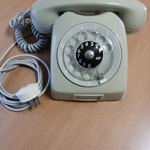 Ericsson puhelin pyöritettävällä numerokiekolla. Pistokejohto katkaistu, muuten hyväkuntoinen.