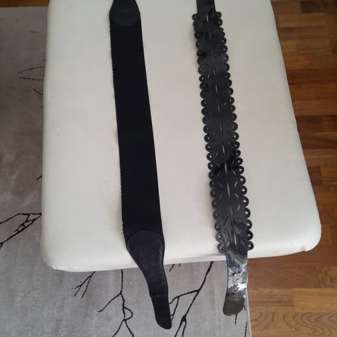 Myydään kaunis vintage-vyö, pituus 95 cm. Vyössä on beige, punottu vyöosa ja vaaleat keinonahkaiset yksityiskohdat. Metallinen, nikkelivapaa solki. Kotimaista tekoa, Veniz Finland.
