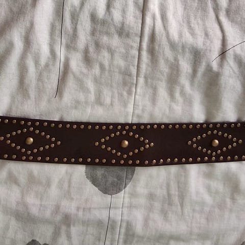 Kunto on hyvä. Pientä kulumaa, mutta yleisilme on siisti ja vyö on ehjä.