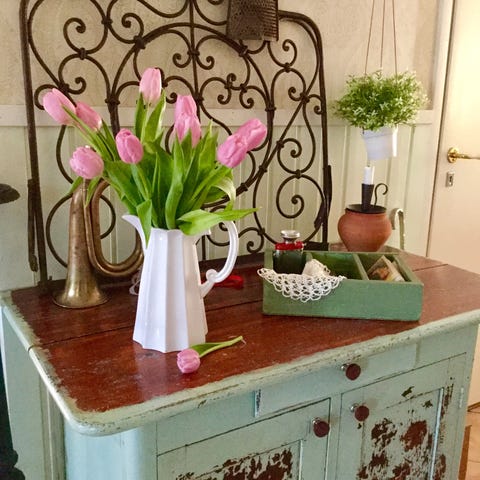 Myydään kunnostettu, vanhan punainen, patakaappi.