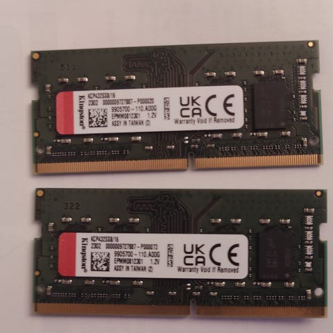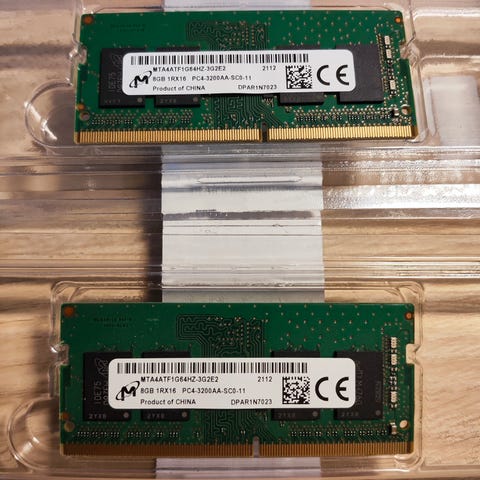 Kolme 16GB DDR4 SODIMM kannettavan tietokoneen RAM muistia. Yhteensä 48GB. Kaksi 2133MHz ja yksi 2666MHz.