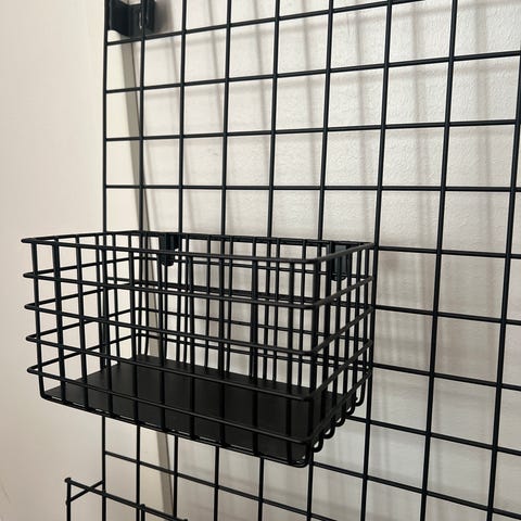 Siisti ja hyväkuntoinen, tarpeettomaksi jäänyt elfa -tyylinen korijärjestelmä kolmella lankakorilla. Esim. vaatehuoneeseen tai suuremman kaapiston sisään.