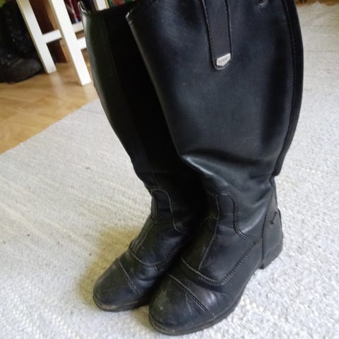 Horzesta ostetut mustat ratsastussaappaat, koko 36. Varren korkeus korkeimmillaan noin 38 cm. Pinnassa pientä naarmua, mutta muuten hyvässä kunnossa.