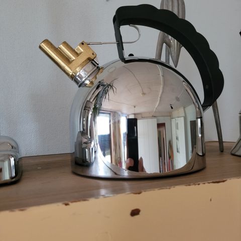 Alessi 9093 on Michael Gravesin suunnittelema ikoninen viheltävä vesipannu, jossa on mattamusta runko ja tyylikäs oranssi lintupilli. Pannussa on leveä pohja tehokasta lämmönjakoa varten ja lämpöä eristävä musta kahva.Michael Gravesin suunnittelema muotoilun klassikko.Linnunmuotoinen pilli on irrotettava.Tilavuus on 2 litraa.Valmistaja: AlessiVäri: musta, oranssiMateriaali: ruostumaton teräs, polyamidi