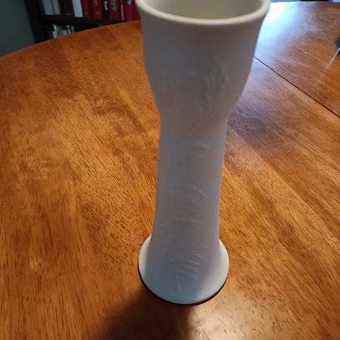 Arabia pieni maljakko, jossa käsinmaalattu kukkakuviointi sekä sudenkorento. Maljakon suuaukon reunassa on kultakoriste. Pohjassa Arabia Made in Finland -leima ja numeromerkintä 47.
