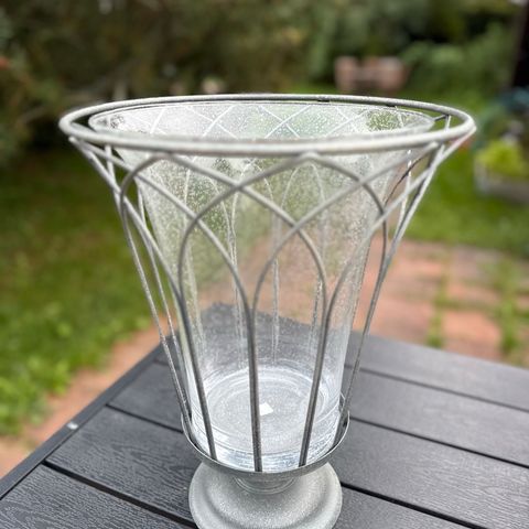 ”Happiness is Homemade" -tekstillä varustettu lasinen hurrikaanilyhty / kynttiläastia.