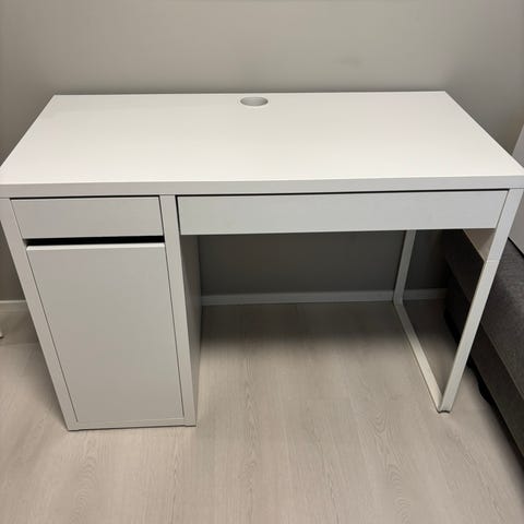 Siisti ja ehjä työpöytä. Pöytälevyn reunassa muutama pieni nirhauma.