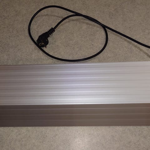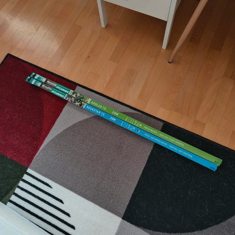 Toimiva loisteputkivalo. alareunasta mitaatuna: pituus 75cm, leveys 17,5cm, korkeus 6cm