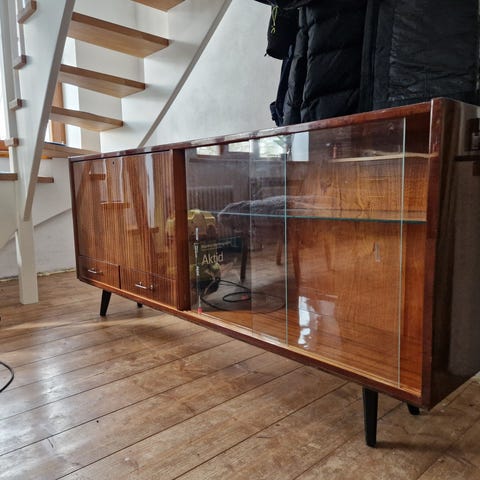 Myydään tyylikäs ja ajaton 1960-luvun vintage-kaappi. Tämä monikäyttöinen huonekalu sopii loistavasti baarikaapiksi, pikkuhyllyksi tai eteisen katseenvangitsijaksi. 🍸📚