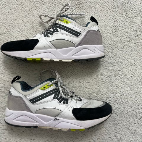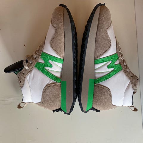 Ihanat Karhun lenkkarit kevääseen. Pientä kokoa, jonka takia itsellä jäi käyttämättä. Vastaa ennemmin kokoa 37-37,5. Pientä käytön jälkeä, mutta tosi hyvässä kunnossa. Vain muutaman kerran pidetty. Väriltään vaaleat/beiget, joissa vihreät sivupaneelit ja oranssit logoyksityiskohdat kantapäässä. Nauhakiinnitys ja kuvioidut nauhat.