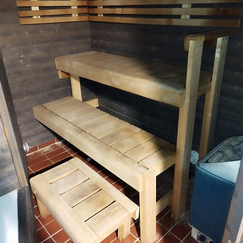 Tervaleppä valmislauteet. Ei runkoa, pinnat,kaiteet,säleiköt ja jakkara.