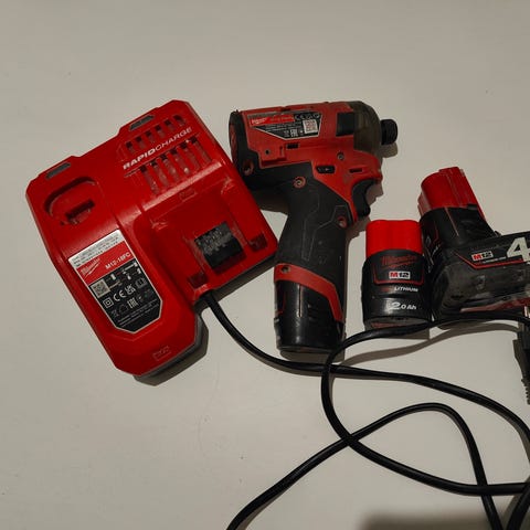 MILWAUKEE akkuporakone 18 V,. 2 akkua 18 V 2,0 Ah, kaksi RCA 7224 MB -laturia.