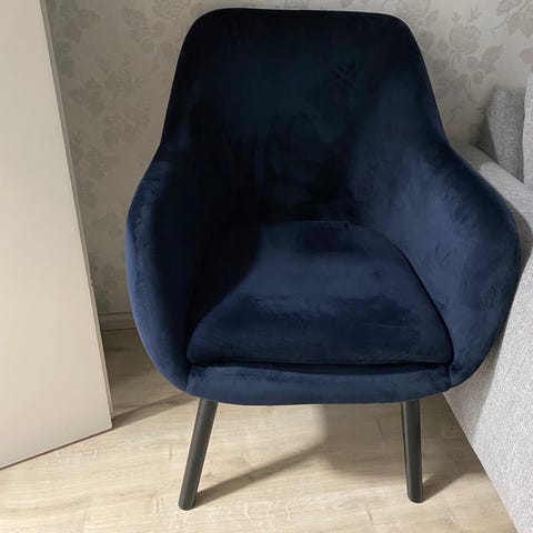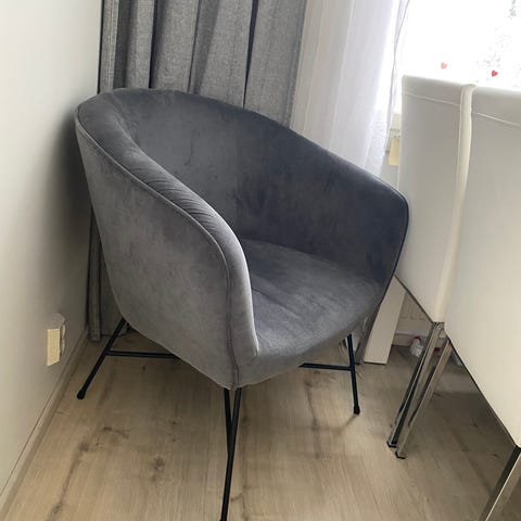 Iskun nojatuoli ja rahi. Puhdas ja käytetyssä kunnossa seuraavalle käyttäjälle. Niskatuki on irrotettavissa, katso kuva. Käytön jälkiä ja pieniä reikiä viimeisessä kuvassa.