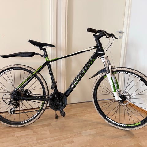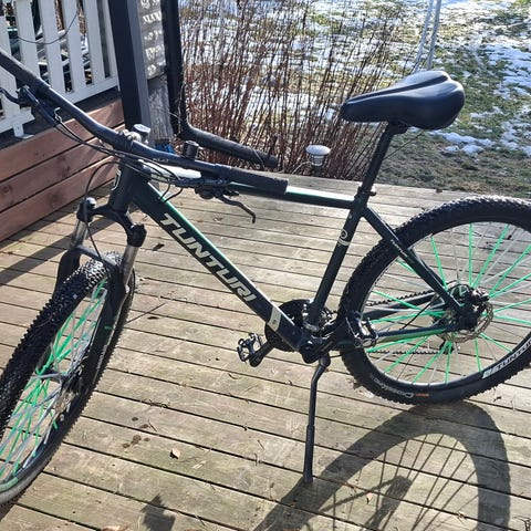 Nishiki Timbuk nuorten maastopyörä 26". Pyörässä on 26 tuuman renkaat ja maastopyörälle tyypillinen runko. Väritys on pääosin musta, rungossa on värillisiä tehosteita. Pyörässä on etujousitus ja levyjarru edessä sekä takana. Runkolukko, johon ainakin toinen avain tallessa. Pienellä huollolla tästä hyvä pyörä seuraavalle, omalle pojalle jäänyt pieneksi. Satula rikki (satulanpäällinen päällä), takarengas kuuluneempi sekä 1-3 takavaihteet eivät vaihdu, 4-8 toimii normaalisti, samoin etuvaihteet 1-3 toimii. Vain nouto. Yhteydenotot viestitse, kiitos.