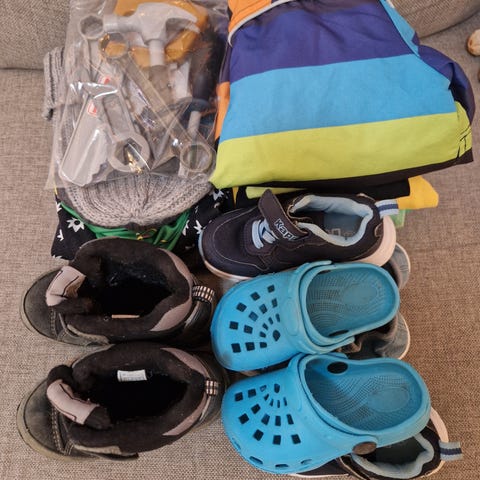 Siisti paketti mekkoja/tunikoita ja yksi jumpsuit, koko 86/92.