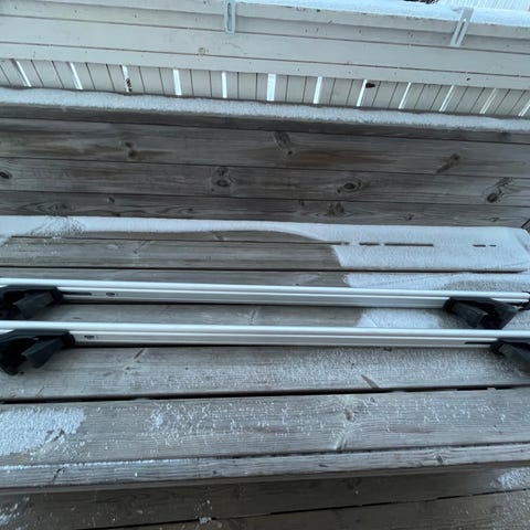 Hyvä kuntoiset Cruzin kattotelineet. Kiinnikkeet löytyy Toyota Aurikseen ainakin 2012-2018 ja Bmw F45/46 Grantoureriin, kiinnitys integroituun kattokiskoon. Katalogien mukaan bemariin liian lyhyet kiinnikeputket mutta todistetusti sopii juuri ja juuri f46 katolle.