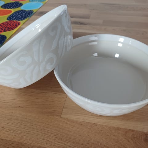 Pentikin pienet kahvikupit ja lautaset, vanilija sarjaa.
