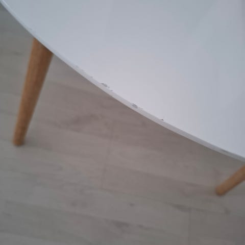 Valkoinen ikean sohvapöytä, jonkinverran käytönjälkiä.