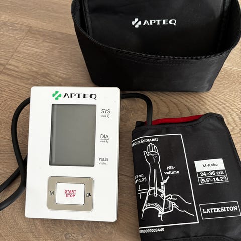 Myydään APTEQ Q5 merkkinen verenpainemittari. Mittari tunnistaa verenpaineen lisäksi myös Rytmihäiriöt (ARR) sekä sydämen lisälyönnit (Pc) ja Eteisvärinän (AFib) Mittari ostettu Apteekin kautta ei postimyynnistä. Laitteen mukana tulee UUSI olkavarsi mansetti.