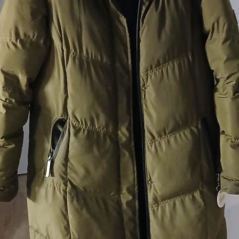 Zara pitkä takki naisille, koko L. Väri vihreä.Materiaali polyesteri. Takissa on tikattu pinta ja vetoketjukiinnitys edessä. Sivulla taskut. Sopii käytettäväksi arkisena päällystakkina viileämpiin säihin.