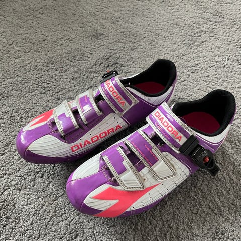 Pyöräilykengät lukkopolkimiin, koko 39. Vähäiselle käytölle jääneet, joten erinomaisessa kunnossa. Tarrat ja boa-kiristys.