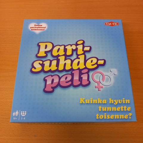 Tactic Täydellinen pari lautapeli. Peli on suunnattu vähintään 15-vuotiaille pelaajille. Pelissä on pelilauta, pelinappulat, kortteja ja ohjeet. Tarkoituksena on edetä pelilaudalla ja vastata kysymyksiin, jotka liittyvät pelaajien mieltymyksiin ja näkemyksiin. Peli soveltuu useammalle pelaajalle seurapeliksi esimerkiksi koti-iltoihin ja juhliin.