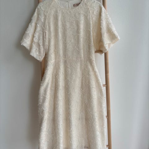 Koko IT40. Sopii minulle 36/s kokoiselle hyvin. Kainalo-kainalo 45, vyötärön kohdalta 38, pituus 86cm.