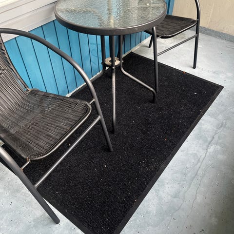 Myydään tummanharmaa/siniharmaa matto eteiseen. Koko noin 90x60 cm.