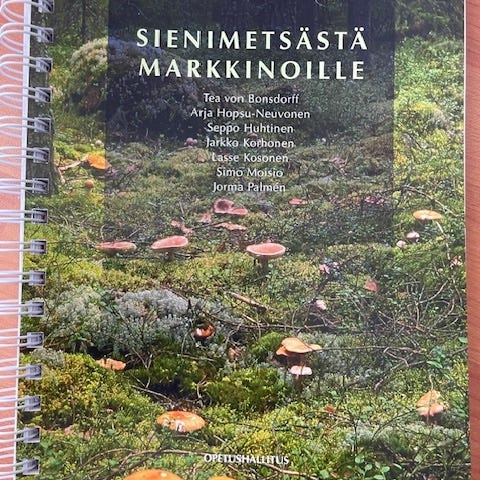 Hulluna sieniin, kovakantinen kuvakansilla. Kirja sisältää reseptejä ja ohjeita erilaisten ruokasienten käyttöön ruoanlaitossa. Ei merkintöjä, s. 860