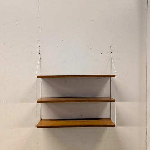 Tiikki tiikkinen retro vintage hyllyt avohylly avohyllykkö String-hylly